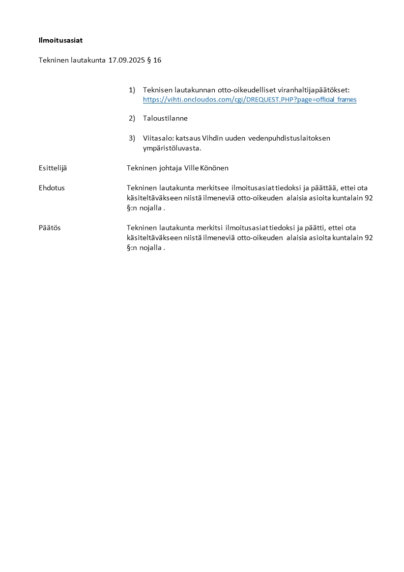 Pöytäkirja 17.09.2025/Pykälä 16