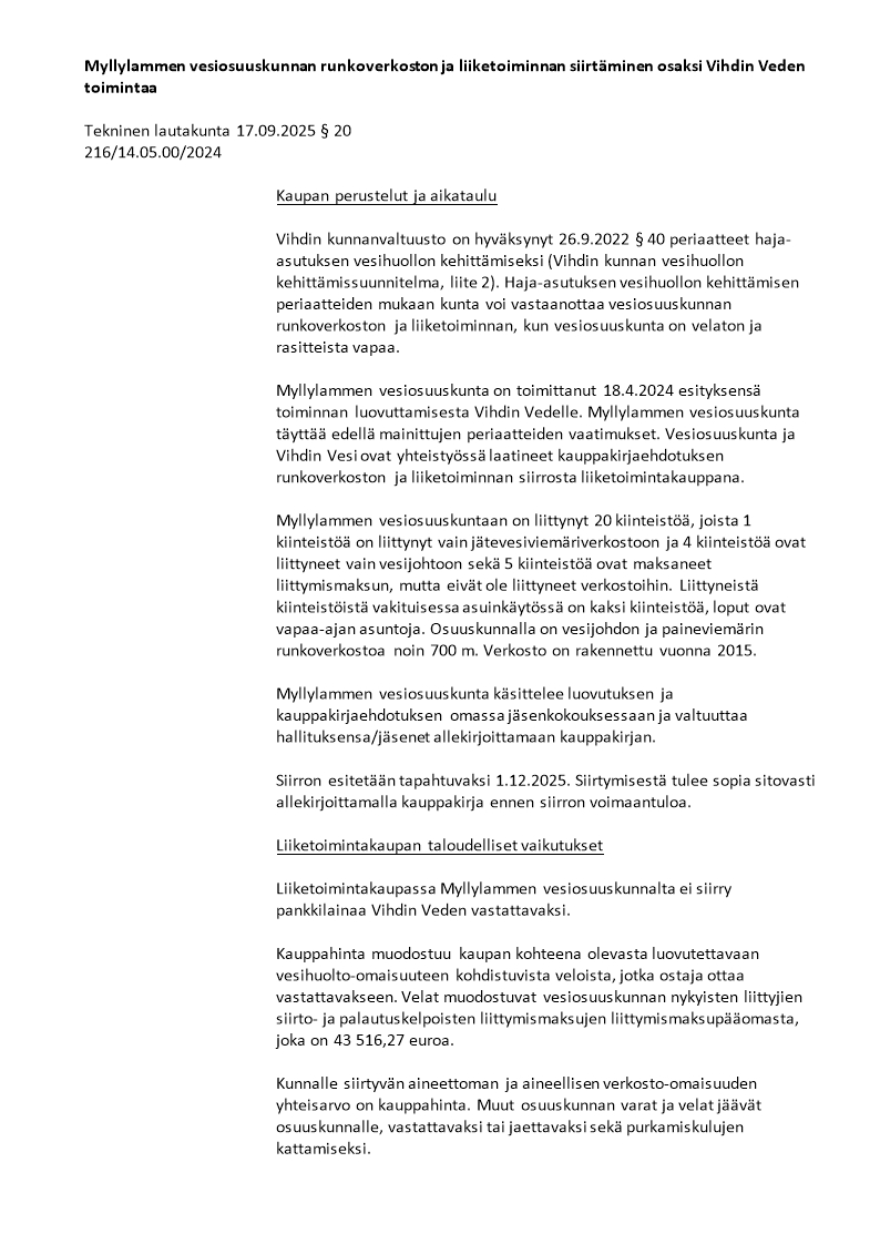 Pöytäkirja 17.09.2025/Pykälä 20