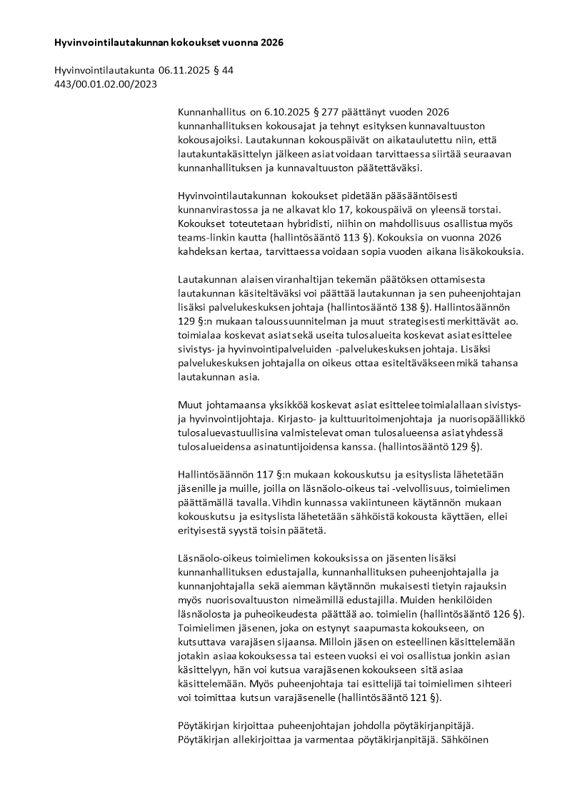 Pöytäkirja 06.11.2025/Pykälä 44