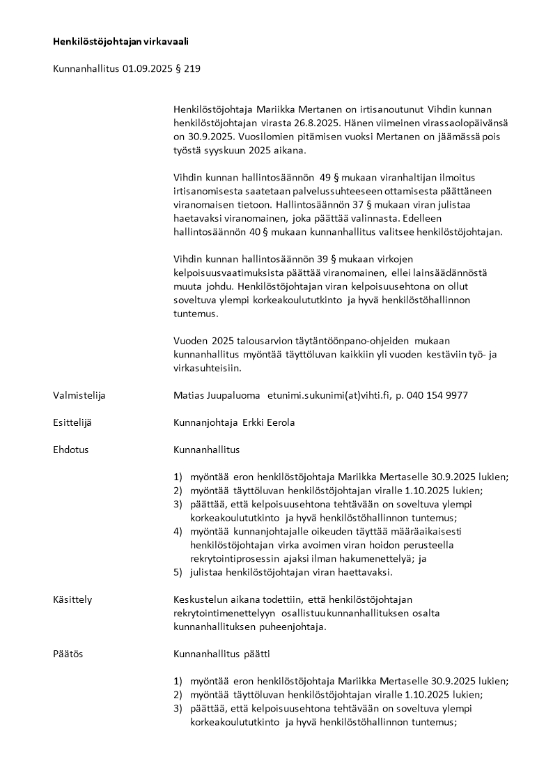 Dynasty tietopalvelu Haku RSS Vihdin kunta
