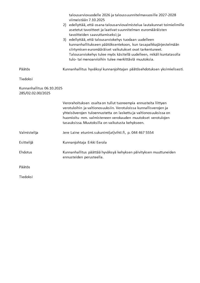 Liite 7 Päivitetty Kehys verorahoituksen osalta