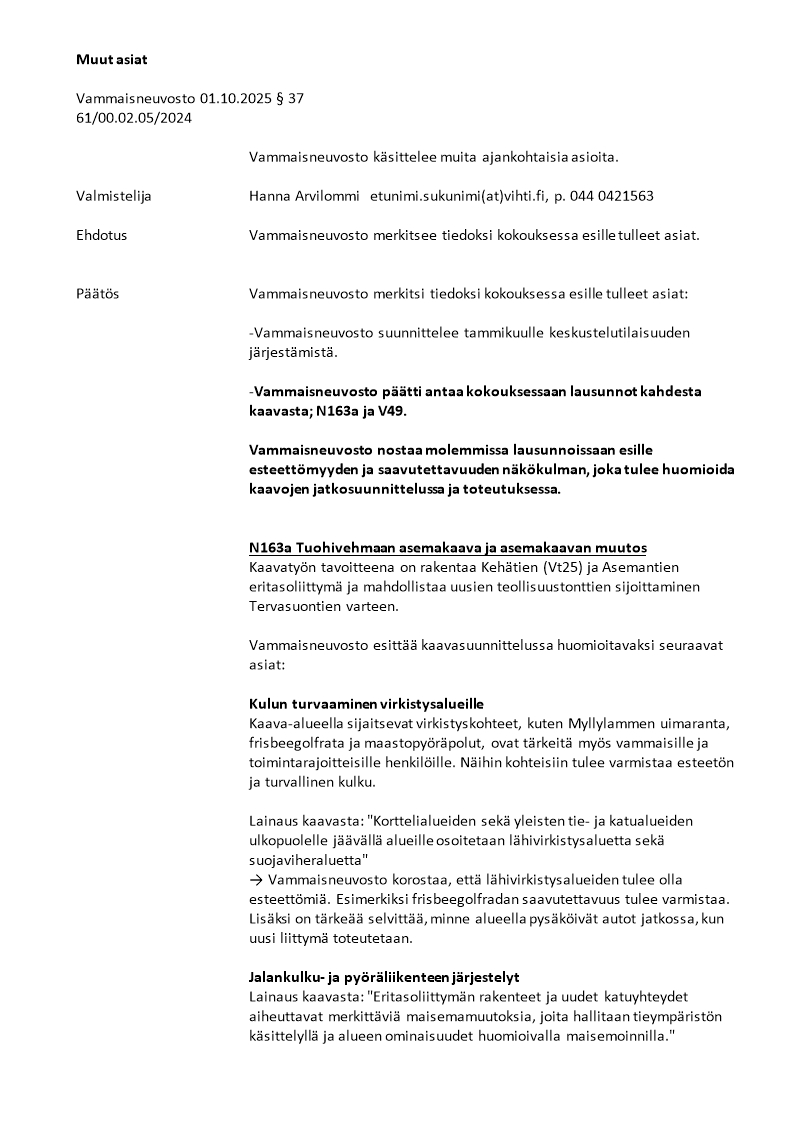 Pöytäkirja 01.10.2025/Pykälä 37