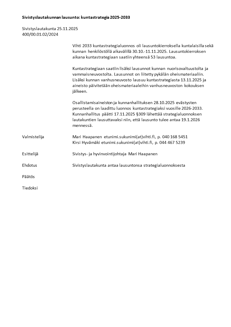 Dynasty tietopalvelu Haku RSS Vihdin kunta