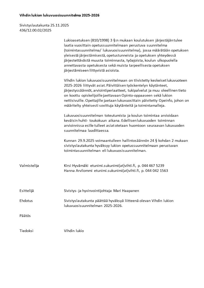 Liite 1 Lukion lukuvuosisuunnitelma 2025-2026