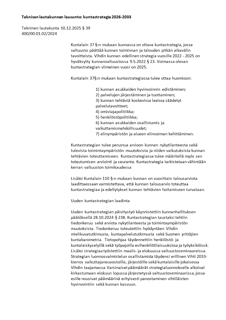 Pöytäkirja 10.12.2025/Pykälä 39