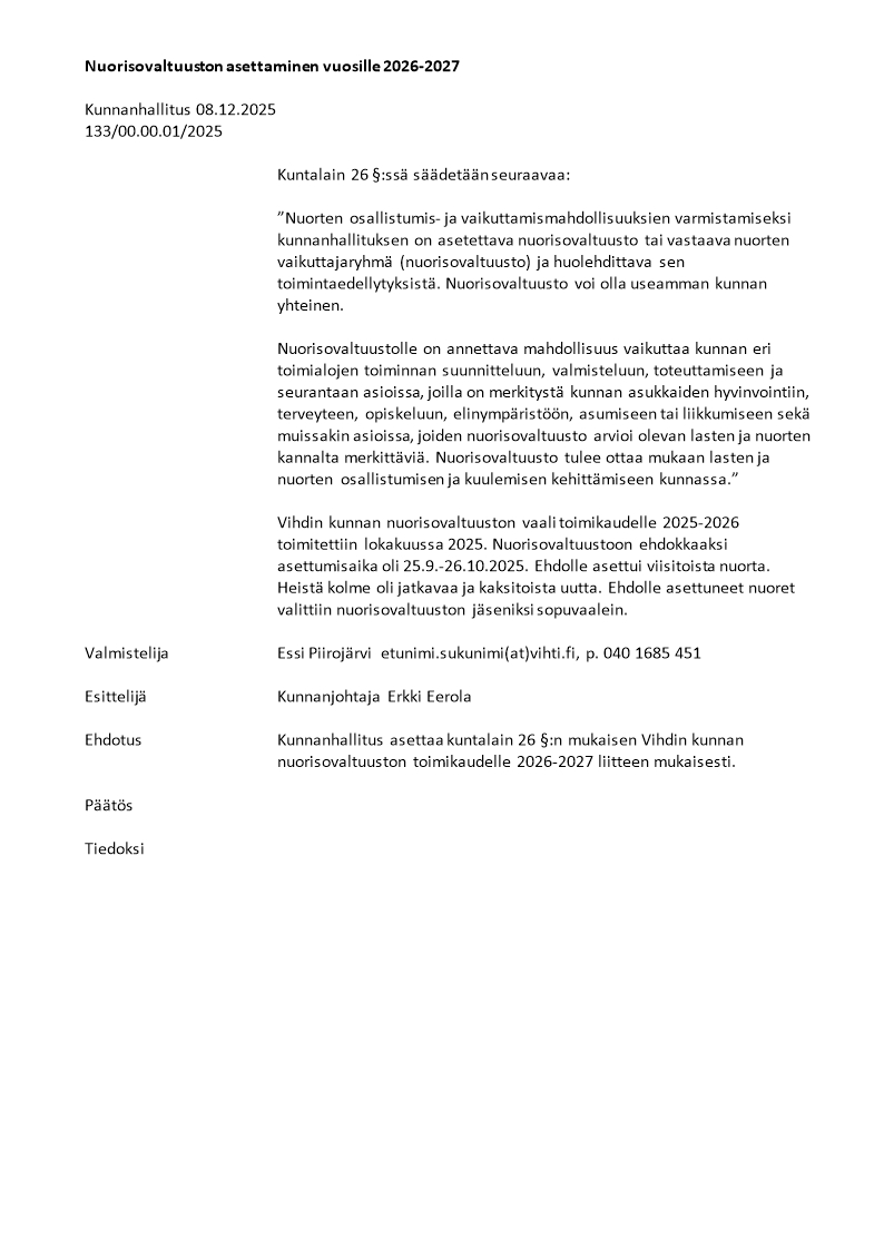 Liite 4 Vihdin nuorisovaltuusto 2026-2027