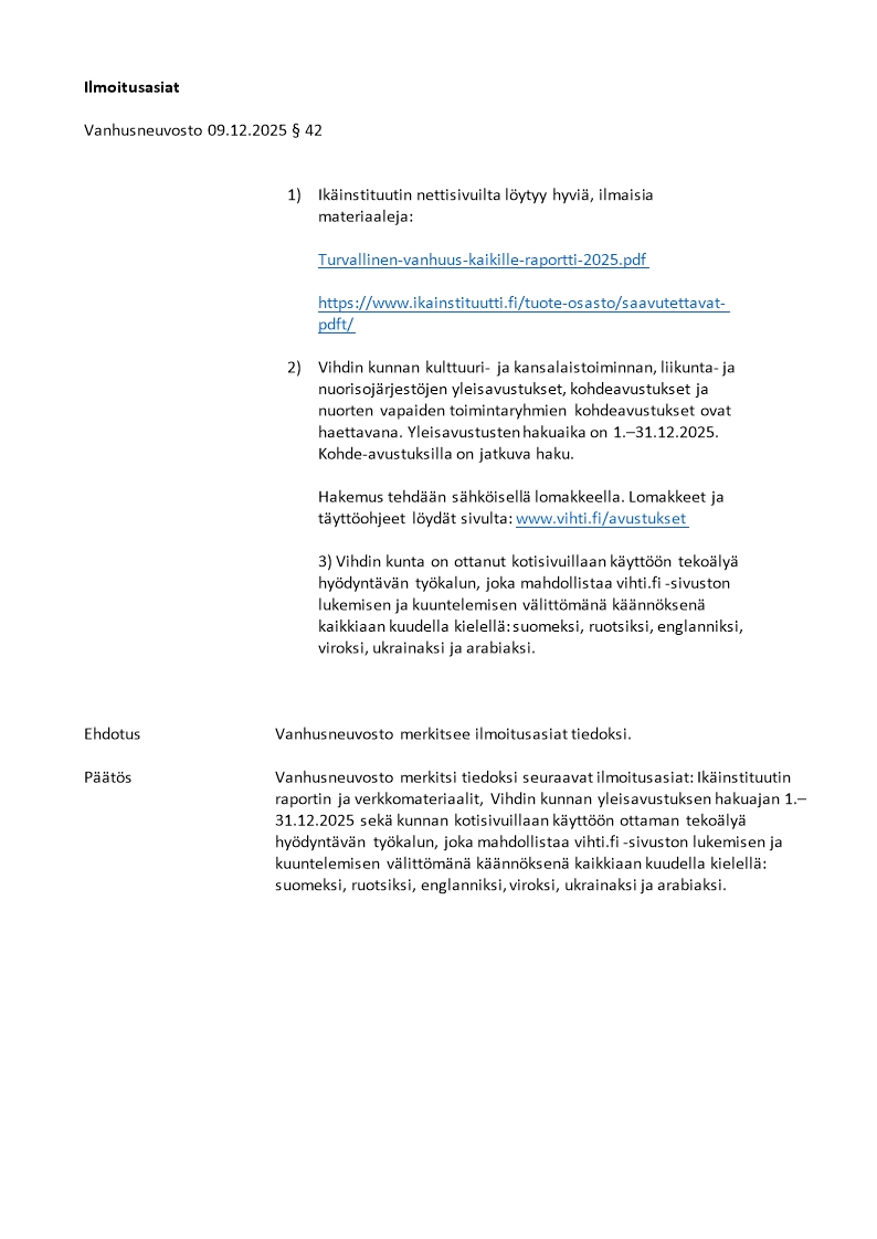 Pöytäkirja 09.12.2025/Pykälä 42