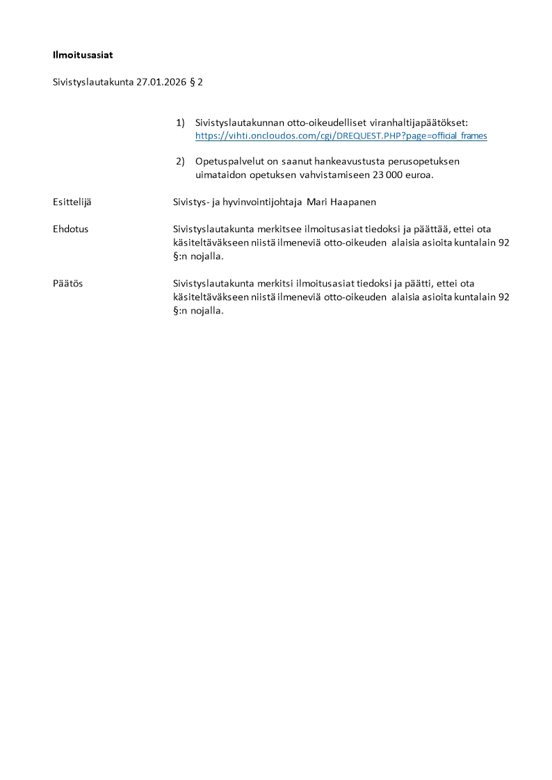 Pöytäkirja 27.01.2026/Pykälä 2