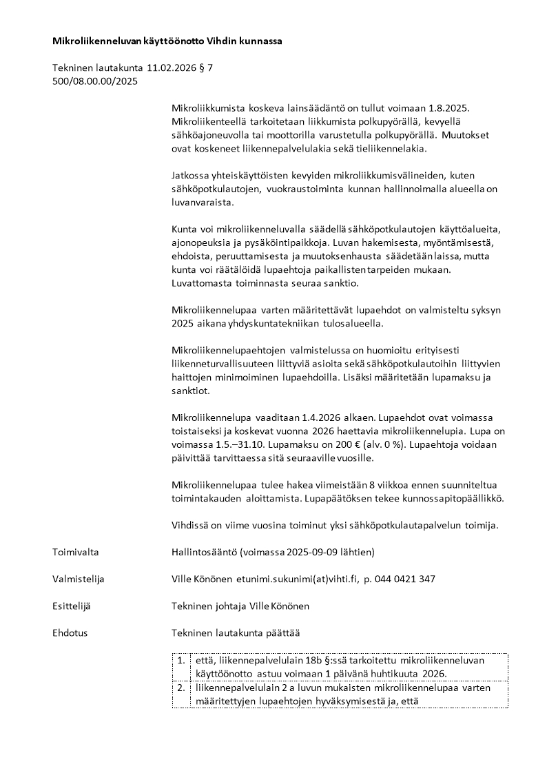 Liite 7 Mikroliikenne lupaehdot Vihti