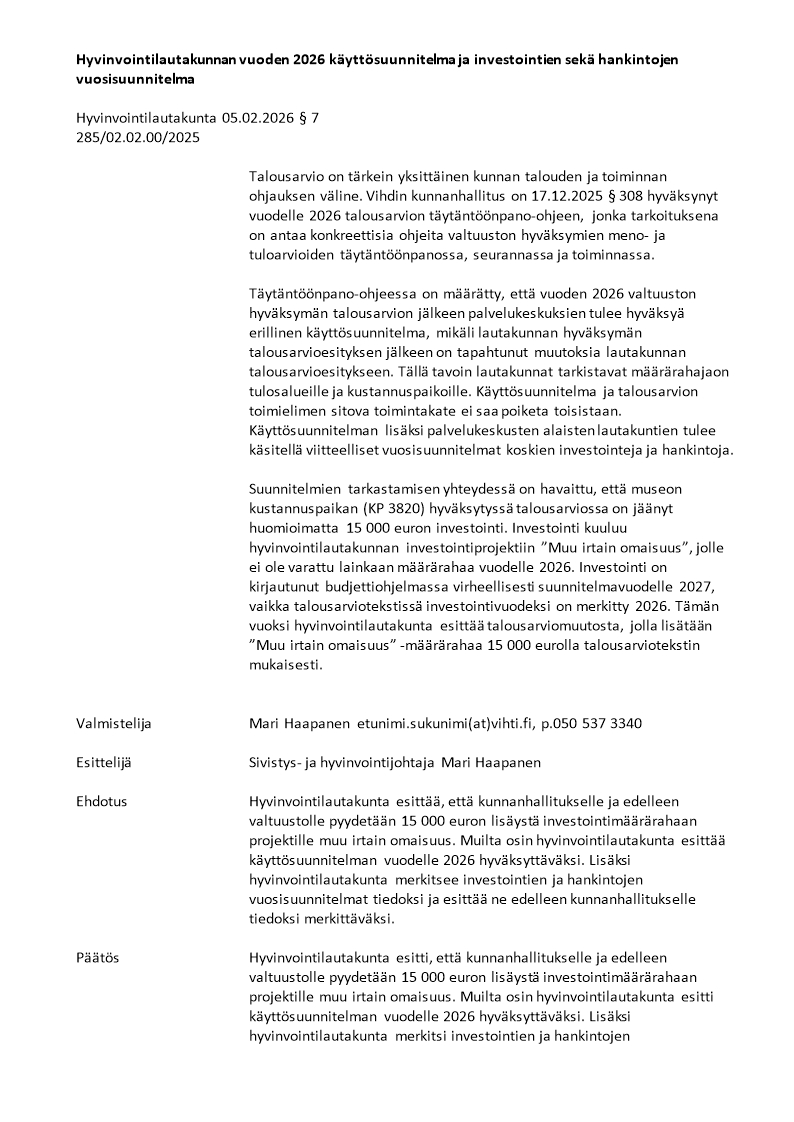 Pöytäkirja 05.02.2026/Pykälä 7