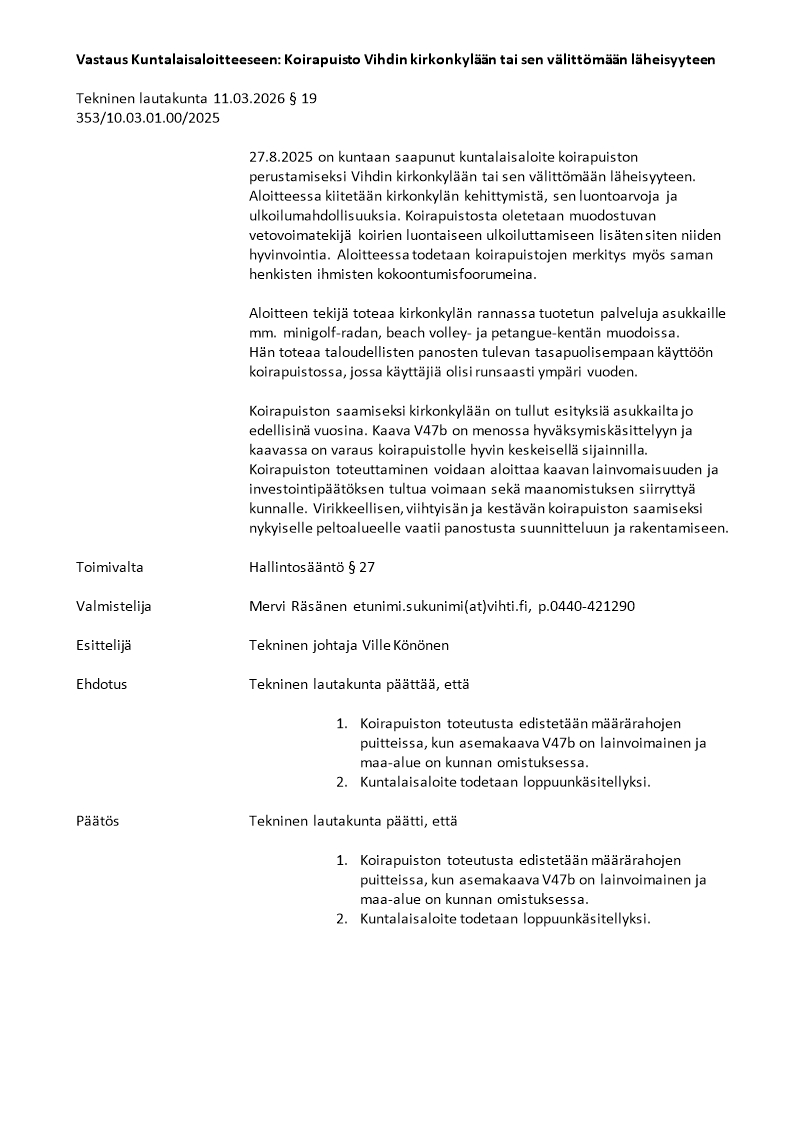Pöytäkirja 11.03.2026/Pykälä 19