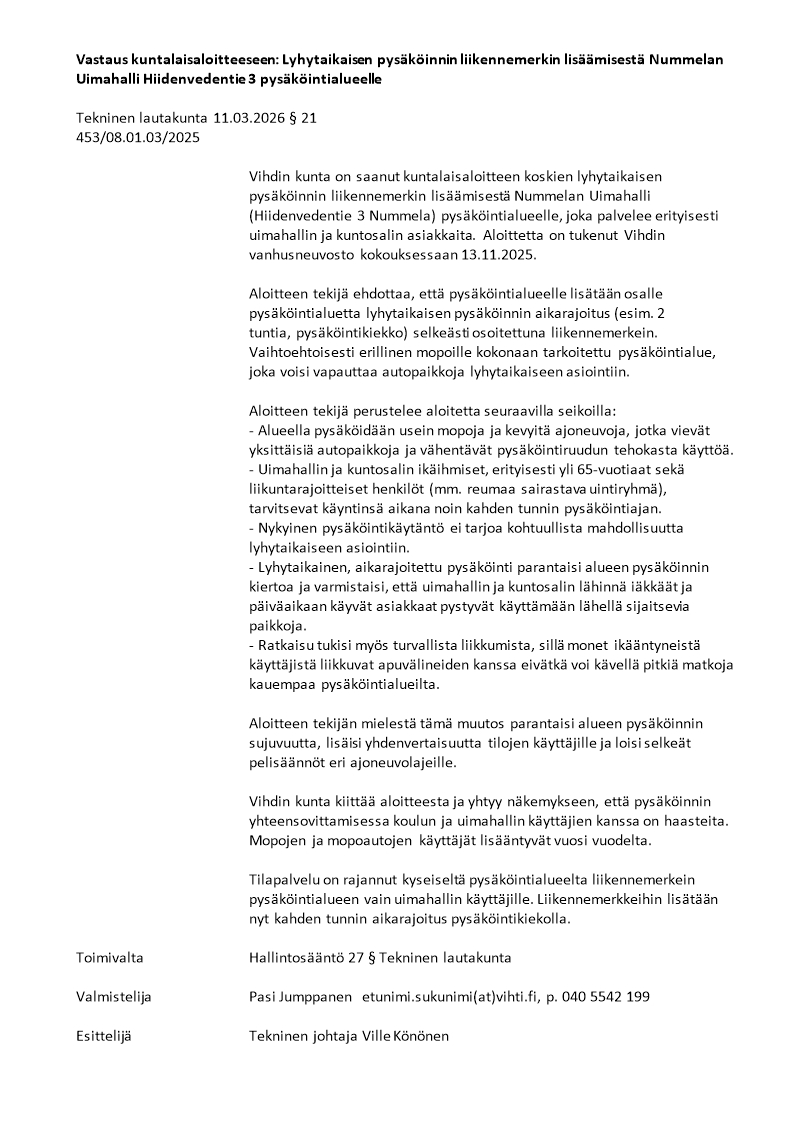 Pöytäkirja 11.03.2026/Pykälä 21