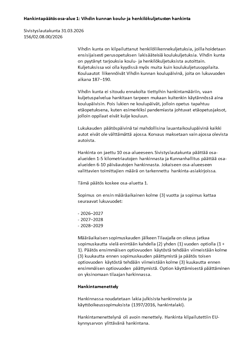 | Liite 2 | Tarjouspyyntö sekä kysymykset ja vastaukset - Vihdin kunnan koulu- ja henkilökuljetusten hankinta |