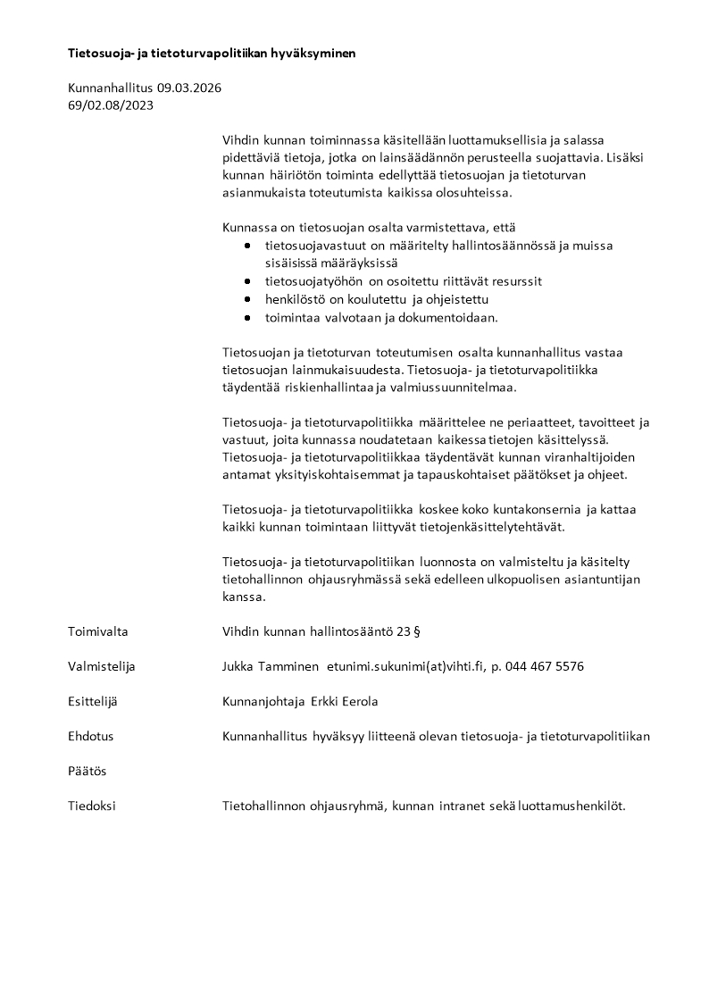 Dynasty tietopalvelu Haku RSS Vihdin kunta