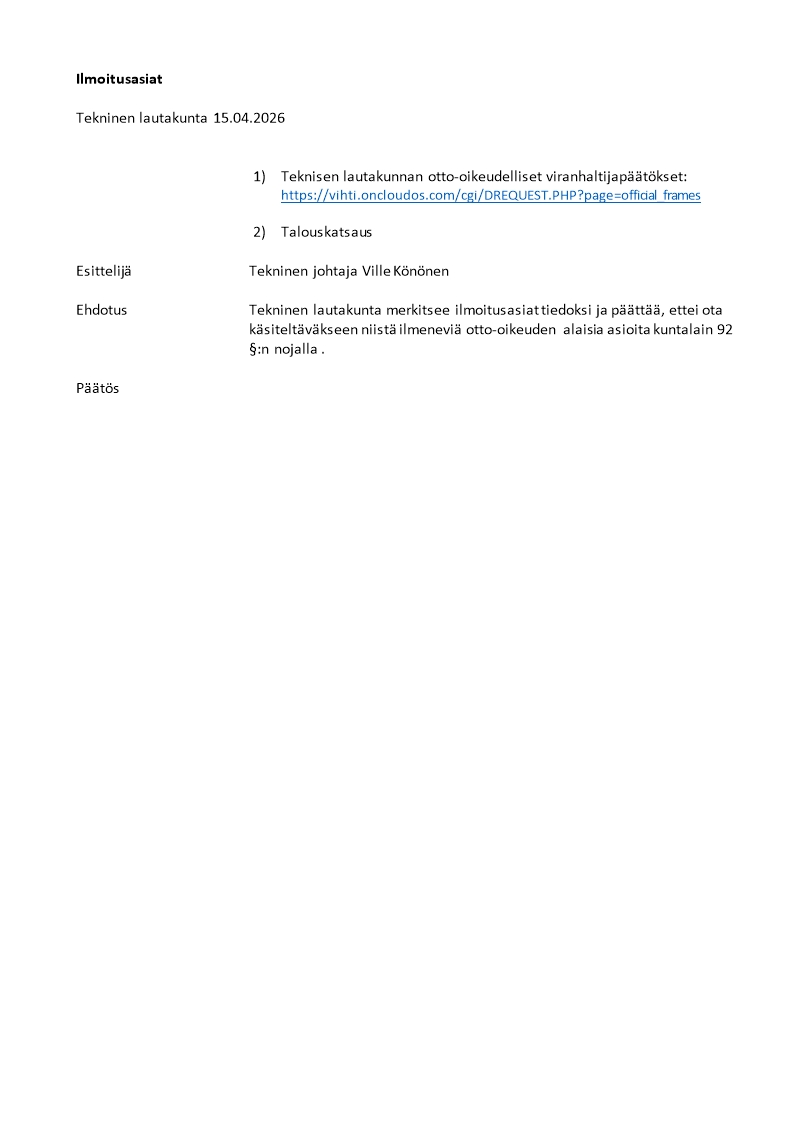 Kokousasiat:https://vihti.oncloudos.com:443/cgi/DREQUEST.PHP?page=rss/meetingitems&show=30