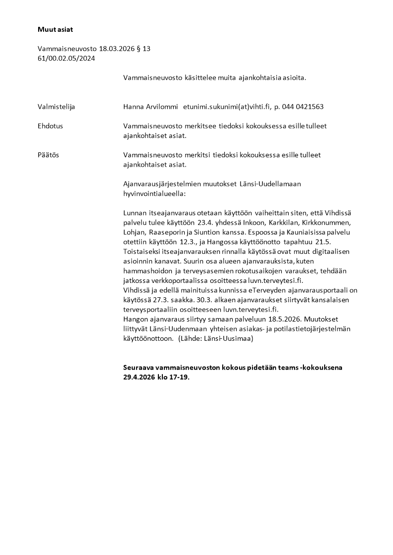 Pöytäkirja 18.03.2026/Pykälä 13