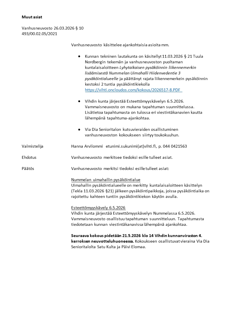 Pöytäkirja 26.03.2026/Pykälä 10